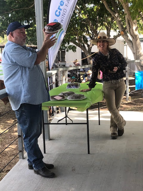 Auctioning off the fruit cakes.