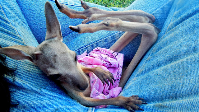 | "Sgt Shultz enjoying a bit of R 'n' R while I'm busy nursing" |