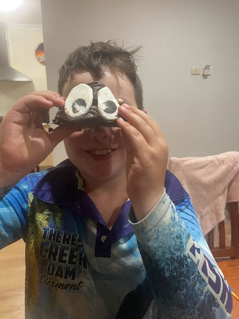 Someone had a birthday! I kinda had to explain it to him... the joke part but when I did he thought it was pretty funny! Poop even had some worms in it.